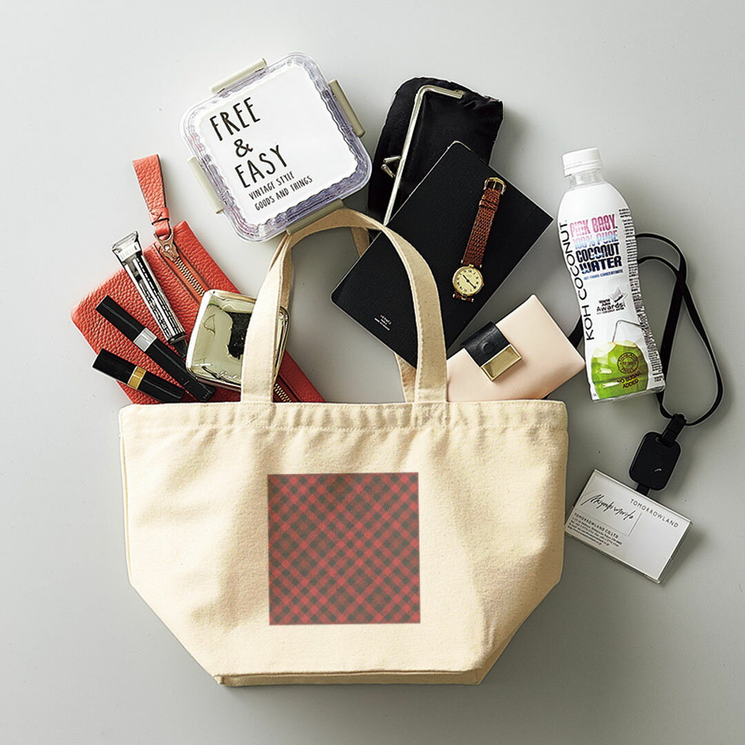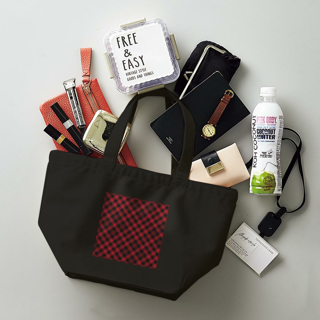 デザインランチバッグ キャンバス デイパック バッグ レディースバッグ トートバッグ ナチュラル 黒 black 000892 チェック 赤