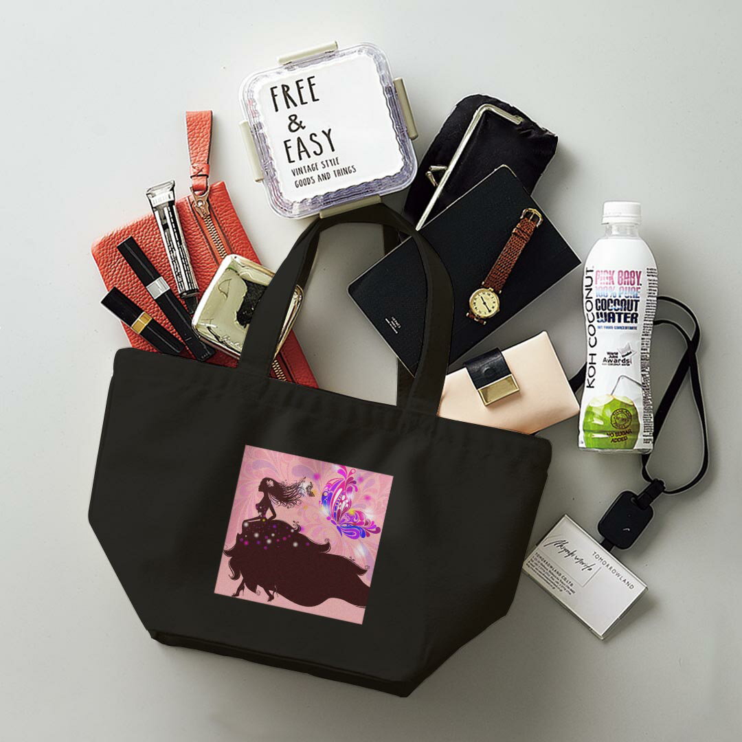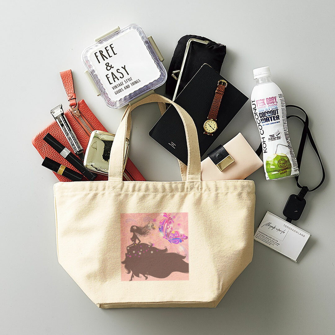 デザインランチバッグ キャンバス デイパック バッグ レディースバッグ トートバッグ ナチュラル 黒 black 005423 蝶 人物