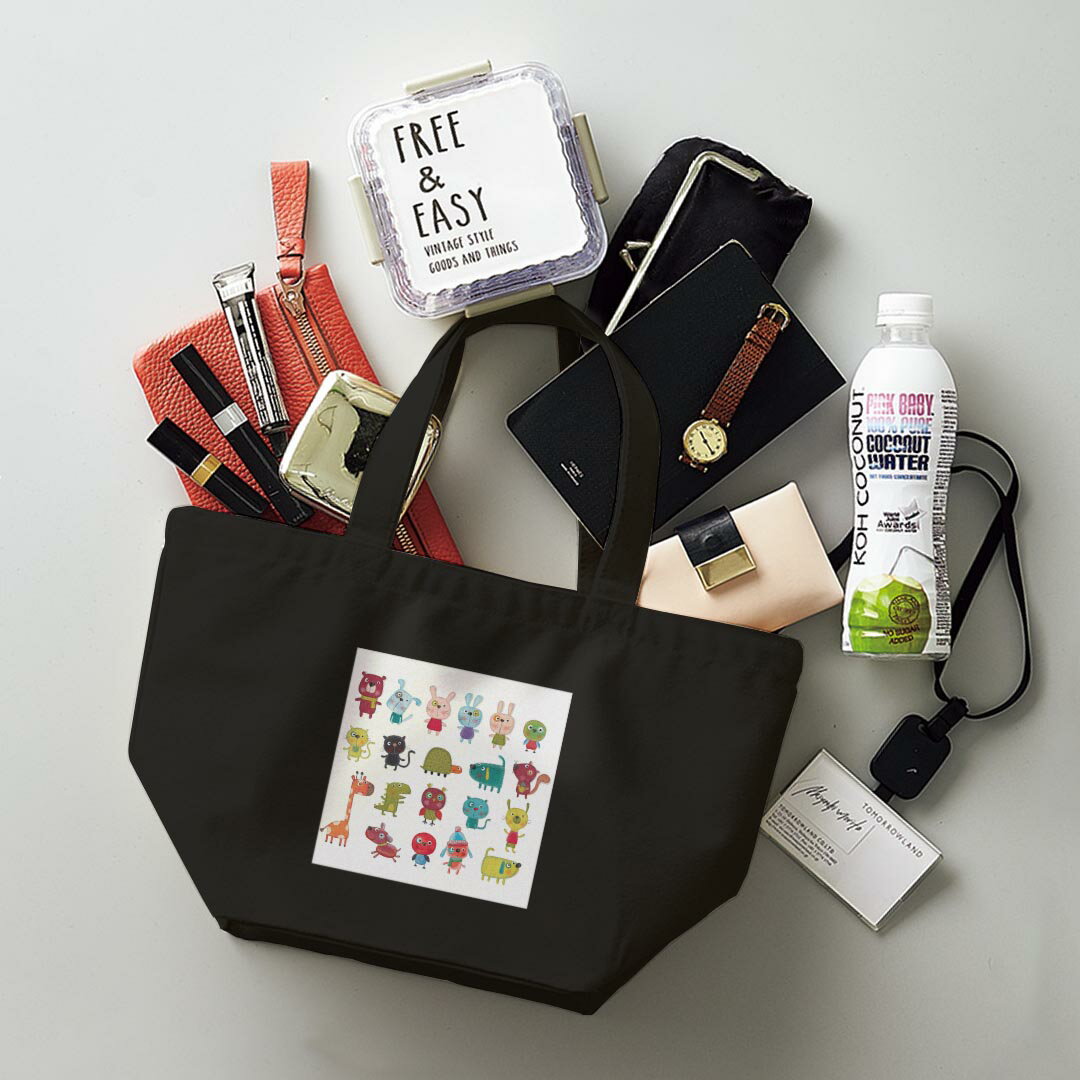 デザインランチバッグ キャンバス デイパック バッグ レディースバッグ トートバッグ ナチュラル 黒 black 009660 動物 キャラクター イラスト