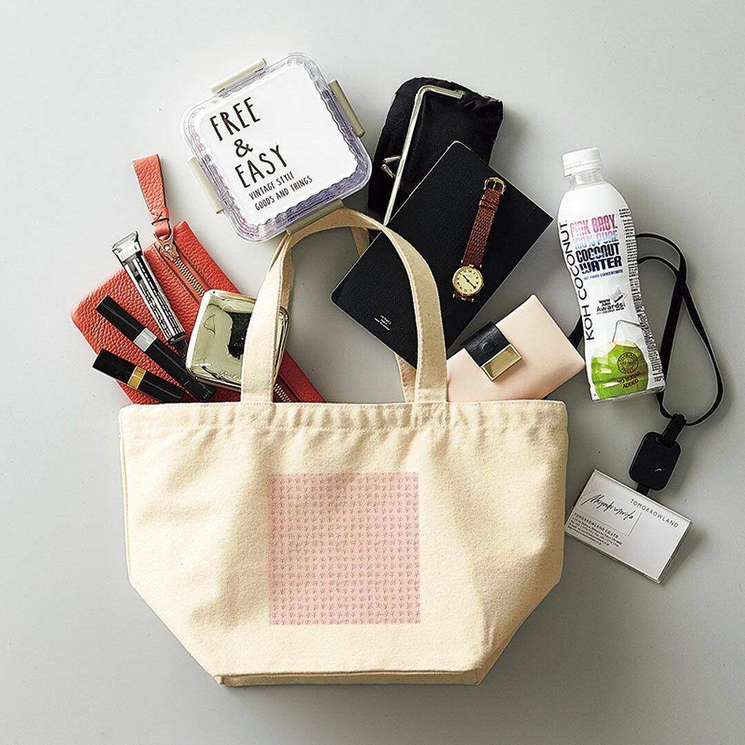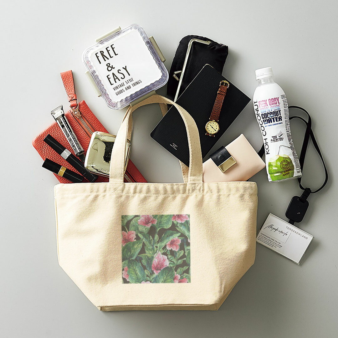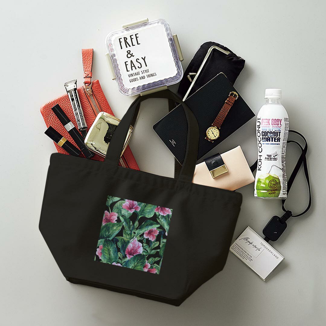 デザインランチバッグ キャンバス デイパック バッグ レディースバッグ トートバッグ ナチュラル 黒 black 010543 イラスト 花 ピンク