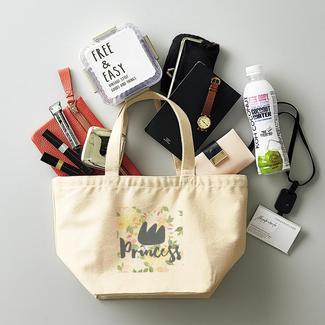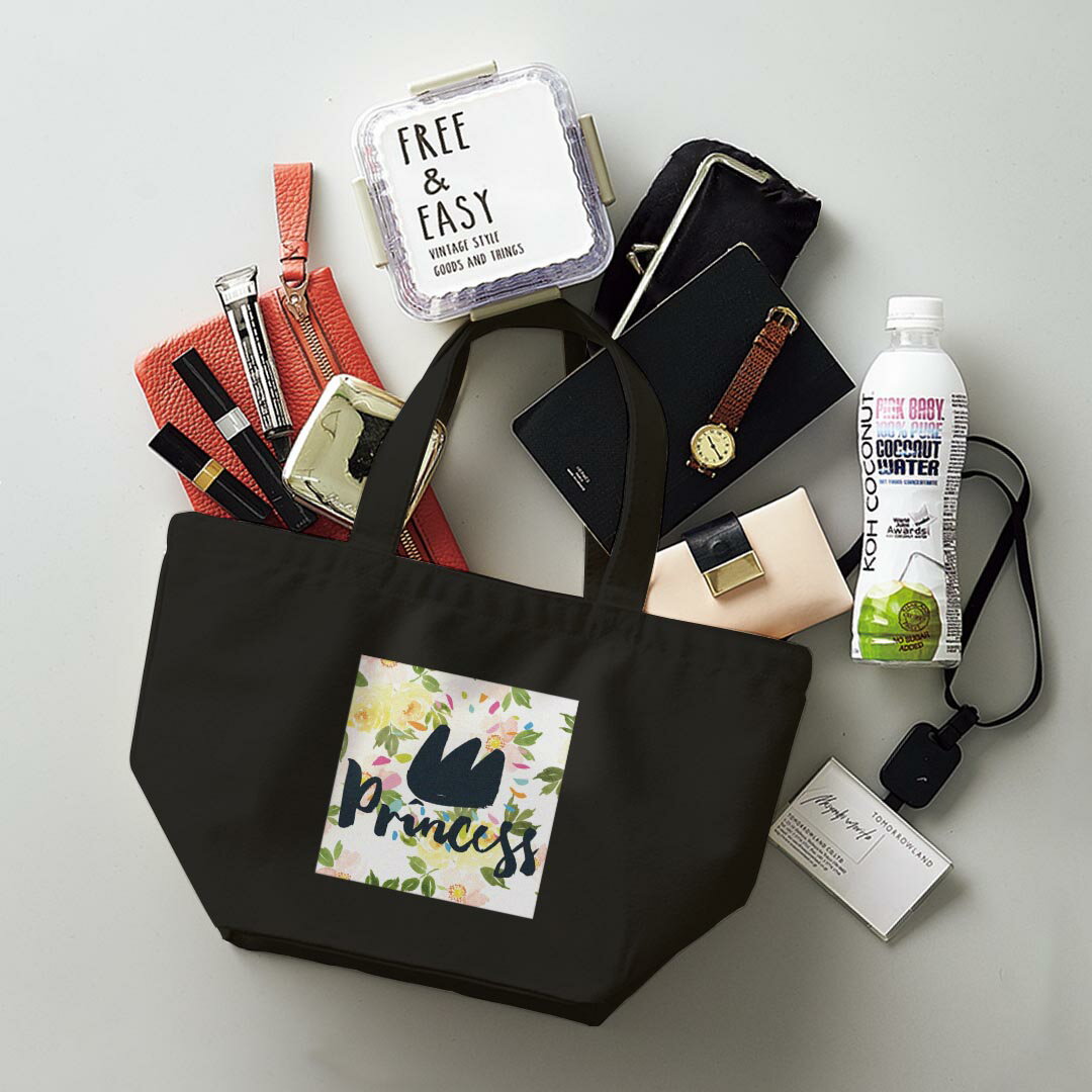 デザインランチバッグ キャンバス デイパック バッグ レディースバッグ トートバッグ ナチュラル 黒 black 011063 王冠 花 英語