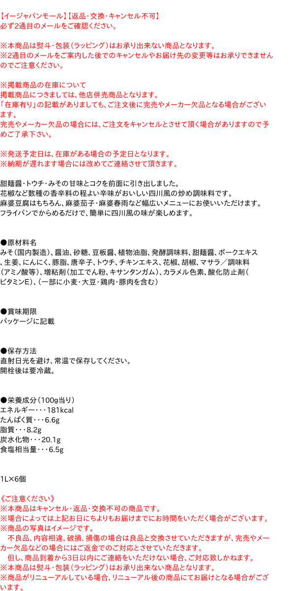 ★まとめ買い★ エバラ 厨房応援団 四川風麻婆ソース(J) 1L ×6個【イージャパンモール】